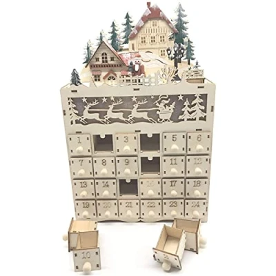 Wooden Christmas Calendar Countdown to LED Decoration 24 Drawers with Light