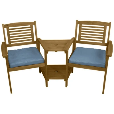 Wooden Companion Love Seat Garden Chairs 2 Tier Table Parasol Hole Corner Bench Bistro Set Twin Seater Jack & Jill Outdoor Patio Furniture 320kg Capacity Solid Acacia Hardwood FREE Cushions