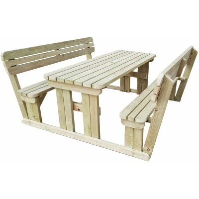 General description At Arbor Garden Solutions, we champion wooden outdoor furniture as an affordable and sustainable way to enhance your outdoor space. Our 8ft (240cm) picnic table and bench set features a natural light-green finish and rounded corners, making it both functional and aesthetically pleasing. Each bench is designed with back support for increased comfort, and the entire set is made from heavy-duty pressure-treated timber sourced from responsibly managed forests. Technical specifications Table Height: 730mm Table Width: 700mm Bench Height: 465mm Bench Width: 265mm Overall Length: 1500mm Timber Dimensions: 89mm x 38mm (4 x 2) Available Finishes: Rustic brown and light green (natural) All fixings are corrosion resistant Visible bolts have black cover caps for safety and aesthetics Installation The picnic table and bench set is supplied in knockdown form for easy on-site assembly, allowing for convenient access to the location. Assembly requires a socket set and a