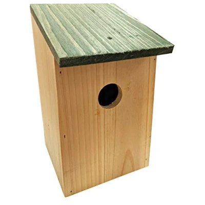 These wooden bird boxes are ideal for attracting all manner of garden birds Features a hinged lid that can be screwed in place 3cm diameter entry hole, suitable for common garden and wild birds Wall or tree mountable with a hanging hole on the back to hang them Overall size approx : Height 21cm x Width 12cm x Depth 14cm (Including roof)