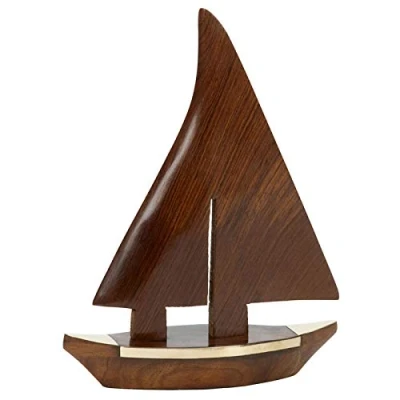 Polished Sheesham wood with brass inlaid at the bow, stern, and along the sides. From Nauticalia, specialists in nautical gifts and accessories since 1974