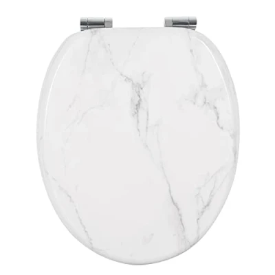 WOODEN TOILET SEAT: FINISHED WITH UPGRADED TOILET SEAT TECHNOLOGY, assured the quality of loo seat. Made of premium MDF. Protection Finished,Durable and Stable for Long Service Life, Heavy Duty to Supports Weight up to 175kg. SOFT CLOSE TOILET SEAT: Soft Slow Close, No Risk of Noising,No Little Fingers Being Slammed,Anti-Rust Stainless Steel Hinges, Comfort to Use IDEAL FOR ALL STANDARD TOILET: 43.8X37.8cm,Adjustable Hinge From 13-17.5cm.All Fittings included for Bottom Fixed Way Non-Slip Mat, Keep the Seat Stay Still,Not Come Loose,Easy to Clean, Please keep the Seat Drying and Please check the shape and size carefully in advance SIMPLE TO ASSEMBLE:Universal in UK, Easy to Install by Following the Clearly Instruction. Granite toilet seat will well decorate your bathroom Soft Close Wooden(MDF) Toilet Seat Designed with LINEN,great decor for your bathroom Easy-to-Clean Surface and Comfortable to Sit on High-performance Material with a LINEN feel the ideal material,great decor for your
