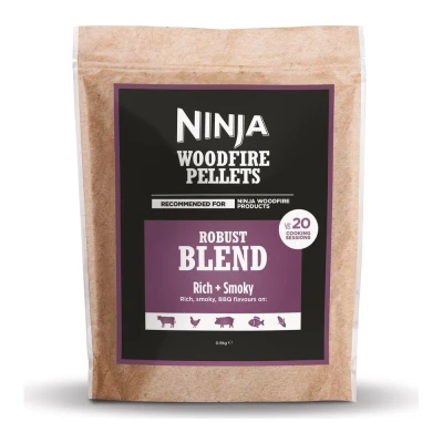 Good to know - Take your BBQ game to the next level with Ninja's 100% real wood pellets - You'll get that authentic, rich BBQ flavour thanks to the perfect blend of Hickory, Cherry, Maple and Oak - This Robust blend pairs perfectly with beef, pork and chicken- Because they're used for flavour, not for fuel, a little goes a long way - this 900 g bag gives you enough for up to 20 sessions- They are specifically designed for use with Ninja Woodfire grills and ovens (sold separately)