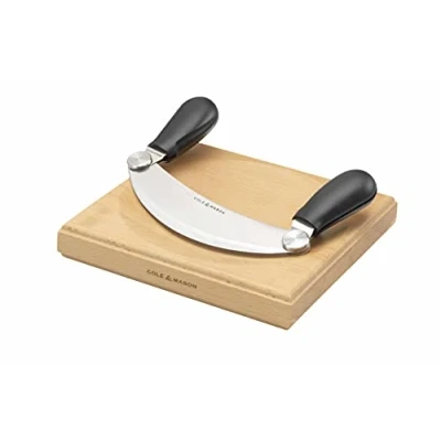 This beautifully crafted set has been designed for the curve of the hachoir blade to perfectly fit with the contour of the wooden board making light work of chopping fresh herbs. Easy and safe to use, simply grip both handles and use the contour of the board to help rock the blade gently back and forth. The hachoir has been designed with safety and storage in mind. When not in use fold the handles back over the blade for protection. Dishwasher safe for the hachoir only. To clean the board, wash in warm soapy water, rinse and dry thoroughly. This product is covered by a 2-year warranty. Please retain your receipt for proof of purchase. Accidental breakage, poor care and damage from misuse are not covered.