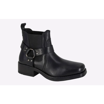 Stylish and sure to turn heads, Woodland deliver the Harley Low, a men's boot made to impress. Elevating the classic black boot to new heights, the Low Harley features a harness with stud detailing and a premium leather upper in a sleek black colourway. - Leather upper - Twin gussets for easy on / off wear - Heel tab - Harness with stud detailing - Durable rubber outsole