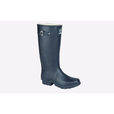 Don't let the weather ruin your day, these Woodland Hobart Navy Rubber wellingtons are designed to keep feet arm and dry so whether wearing for work or play, you can focus on the task at hand. - Synthetic rubber upper - Wide fit design - Buckle detailing - Rubber outsole for traction