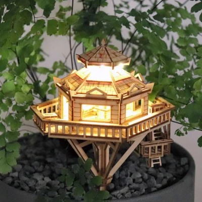 Unleash your inner architect with the Woodland Outpost Wooden Kit, where creativity meets adventure in the heart of your home! This delightful DIY wooden model showcases a charming tiered roof and a wrap-around balcony, offering a fun challenge that's perfect for crafty enthusiasts aged 15 and over. The kit includes LED lights that will make your miniature hideaway glow magically, turning your build into a serene night-light dream. Assembling this wonder is not just about following instructions but indulging in a therapeutic experience that stimulates your creative juices. Using sustainable materials, you’ll enjoy every moment spent crafting this delightful outpost, featuring an acrylic plant stake that adds a touch of nature. With a puzzle level of 3 out of 6, it promises just the right amount of fun without any brain-bending frustration! Crowning your creation is the satisfying feeling of accomplishment as you put together this 3D puzzle masterpiece. Whether as a quirky gift or a personal project to cherish, the Woodland Outpost is an extraordinary choice for anyone who revels in hands-on activities while surrounded by the creativity of their own design. Get ready to impress your friends with your crafty skills and this stunning piece of decor!