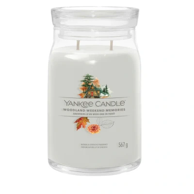 About This FragranceSavour each moment of your woodland adventure with notes of soft amber, autumn fruits, and creamy coconut milk.Fragrance Notes:Top: Bergamot, Orange, Pear Mid: Jasmine Petals, Vanilla, Coconut Milk Base: Cosy Amber, Woodland Moss, SandalwoodAbout Signature Large Jar Candles Experience the Yankee Candle brand, totally reimagined. This refreshing take on the iconic Jar shape is designed to create the best experience to date. This is the largest Jar Candle in the collection at 567g. Two wicks and a premium soy-wax blend provide beautiful ambiance. Hand illustrated labels and vibrant wax colours are perfectly matched with this Signature exclusive and tried-and-true fragrances to create an inspired addition to your home. Burn time up to 90 hours. Height 15cm x Width 9.9cm.