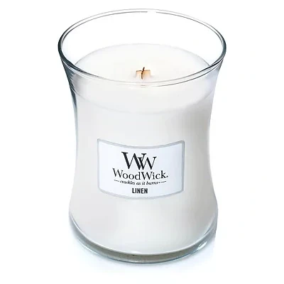 WoodWick Scented Candle with Crackling Wick, Linen Medium Hourglass Candle, Long Burning Candles: Up to 60 Hours, Perfect Christmas Gifts for Women