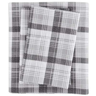 Woolrich Cotton Sheet Set Cottage Charms Print, 100% Flannel Sheets Warm & Fuzzy Bedding Cal King Size Sheets, Fitted Pocket Fits Up to 14" Mattress, Grey Plaid, 4 Piece