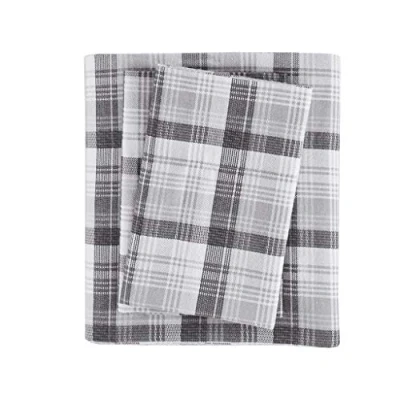WOOLRICH Flannel 100% Cotton Sheet Set Warm Soft Bed Sheets with 14" Elastic Pocket, Cabin Lifestyle, Cold Season Cozy Bedding Set, Matching Pillow Case, Queen, Grey Plaid, 4 Piece