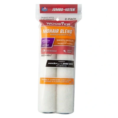 General description Wooster Jumbo Koter Mohair Mini Roller Sleeves are designed for both professional painters and DIY enthusiasts. With a rich history of over a century, Wooster is a trusted name in the painting industry, known for crafting high-quality brushes and tools that deliver superior performance. Technical specifications Size: 6.5 inches Nap: 1/4 inch Material: Mohair Pack: Twin Pack Usage Suitable for solvent and water-based paints and varnishes Provides a smooth finish with great coverage Ideal for walls, furniture, doors, and trim Ensures smooth paint release Other information Quick and easy to clean