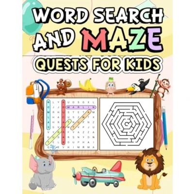 Word search and Maze Quests for kids: Activity Puzzle Book Kids Ages 6 8 100 Puzzles With Solutions