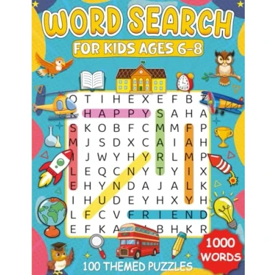 Word Search for Kids Ages 6 8: 100 Fun and Themed Puzzles to Boost Vocabulary, Focus, Spelling Skills With Cute Illustrations Solutions Included.
