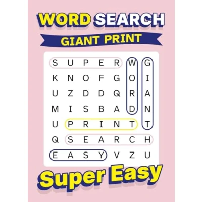 Word Search Giant Print Super Easy: Jumbo Font Wordsearch Puzzle Book for Seniors / Elderly Very Simple Large Format