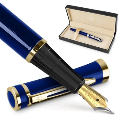 Wordsworth & Black Fountain Pen Set, 18K Gilded Extra Fine Nib, Includes 24 Pack Ink Cartridges, Refill Converter Gift Box, Gold Finish, Calligraphy, [Imperial Blue], Perfect for Men Women