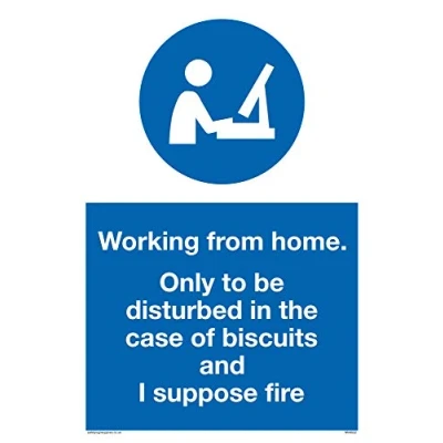 Working from home. Only to be disturbed in the case of biscuits and I suppose fire