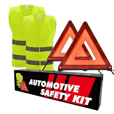【Professional 2x Warning Triangle Safety Kit】 Engineered for the highest safety standards. This kit contains 2x ECE R27 certified warning triangles and 2x EN ISO 20471 certified hi-vis reflective vests, providing double the warning protection and ideal for commercial vehicles and safety-conscious motorists. 【Meets HGV & Fleet Legal Requirements】 This configuration fully complies with the safety equipment regulations for Heavy Goods Vehicles (HGV), lorries, and commercial vans across the UK and Europe. The two triangles create a longer, safer warning zone when placed in front of and behind a broken-down vehicle. 【E-Mark Approved for Road Use】 Every component is officially approved to stringent European standards (ECE R27 for triangles, EN ISO 20471 for vests), ensuring your vehicle passes inspections and is legal for road use throughout Europe. 【Maximum Crew Visibility & Safety】 Includes two high-quality reflective vests, ensuring both the driver and a passenger are clearly visible while attending to a breakdown. The wide reflective tapes offer all-round, 360-degree protection. 【Ready-to-Gift Retail Box Packaging】 Comes in a sturdy, high-quality retail box, ready for immediate use straight out of the package. The perfect safety gift for loved ones or a standardised kit for company fleet procurement.