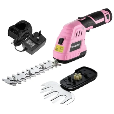 2-in-1 Function: Our electric hedge trimmer features an interchangeable blade system for you to easily convert it from a grass shear to a hedge trimmer. For the hedge trimmer function, the max cutting length is 160mm and the max cutting thickness is 7.7mm. For grass shear function the max cutting width is 125mm Lightweight & One Hand Operation: Compared with other brands of 12V battery hedge trimmers, WORKPRO cordless grass trimmer is smaller and lighter, weighing only 750 g, and can be easily moved and operated with one hand, reducing muscle fatigue Long Battery Life: The battery shrubbery trimmer is equipped with a detachable large-capacity 2.0Ah lithium-ion battery, allowing charging grass cutter anytime and anywhere, making trimming more convenient. At the same time, the 1-hour fast charging charger saves your waiting time Easy to Use: The small hedge trimmer is equipped with a top safety lock to prevent accidental start, press the top safety lock and trigger at the same time to start, more ergonomic than the side safety lock, and very suitable for people with small hands and the elderly Multiple Uses: The power hedge trimmer can not only for trimming lawns, grass, and hedges but also trimming small trees, shrubs, branches, and other plants, rechargeable grass shear is your best gardening companion