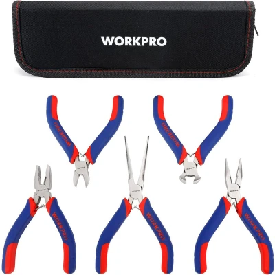 WORKPRO Mini Pliers Set Jewelry 5 Piece, Including Linesman Pliers, Long Nose Diagonal End Cutting, Needle with Organizer Pouch
