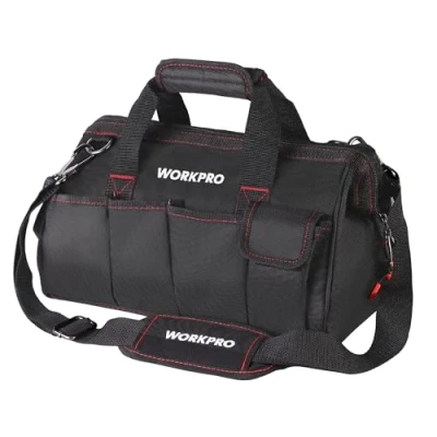 WORKPRO W081021A Tool Bag, Muti Purpose Wide Mouth Storage Bag,14 Inch, Blue, Black