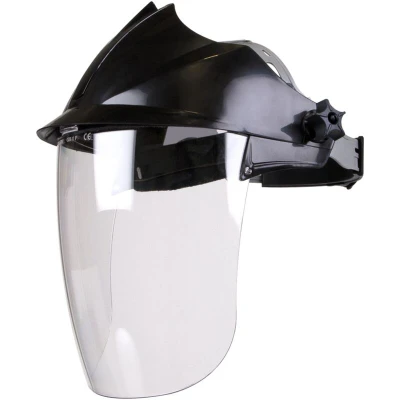 The polycarbonate visor offers increased protection, stability, and durability, making it a reliable choice for various applications. This material is known for its high impact resistance, safeguarding the wearer from potential hazards in the workplace. The visor also boasts a practical stepped angle adjustment feature, allowing for seamless flipping up when not in use. This functionality not only provides convenience but also ensures that users can easily adapt the visor to their specific needs.