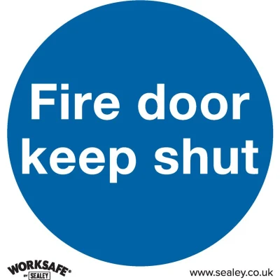 General description Sealey Worksafe® Fire Door Keep Shut Safety Sign is a mandatory safety sign made from self-adhesive vinyl. It is designed to ensure that fire doors remain closed, enhancing safety in various environments. Technical specifications Material: Self-adhesive vinyl Dimensions: 80 x 80 mm Pack size: 10 signs Model No.: SS1V10 EAN: 5054511988802 Compatibility and accessories Suitable for use in offices, workshops, and all other commercial and retail environments. Other information