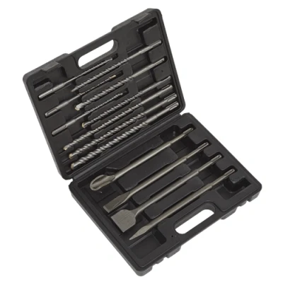 The Sealey Worksafe® SDS Plus Drill Bit & Chisel Set is an essential tool kit for both professional tradespeople and DIY enthusiasts. This comprehensive 13-piece set includes the most popular sizes of SDS Plus drill bits, ensuring that you have the right tool for a variety of tasks. Designed specifically for use with SDS Plus and Roto-Stop machines, these professional-quality steel bits offer durability and performance for all your drilling and chiselling needs.