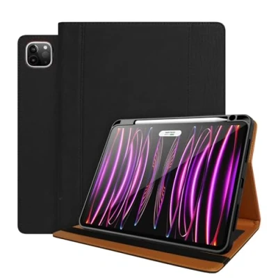 World biz Leather Case for iPad Pro 11 Inch 2022/2021/2020 (4th/3rd/2nd Generation) with Pencil Holder, Premium Cover Card Slots, Auto Sleep/Wake 11'' 4th/3rd/2nd Gen, Black