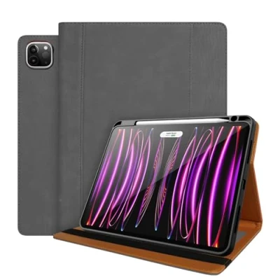 World biz Leather Case for iPad Pro 11 Inch 2022/2021/2020 (4th/3rd/2nd Generation) with Pencil Holder, Premium Cover Card Slots, Auto Sleep/Wake 11'' 4th/3rd/2nd Gen, Grey