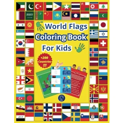 World Flags Coloring Book for Kids: All Countries of the Activity Complete Geography Educational Handbook Children and Adults Atlas about Every States, Capitals Continents