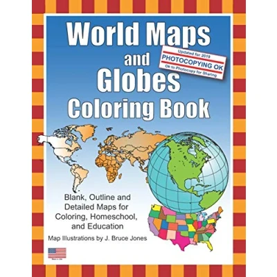World Maps and Globes Coloring Book: Blank, Outline Detailed for Coloring, Home School Education