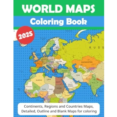 World Maps Coloring Book: Regional and Continents, Detailed Maps, Individual Country Globe Views, Borders, Capitals, Blank Outline for Learning
