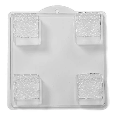 4 Cavity Embossed Knot On A Square Soap/Bath Bomb Mould Mold I04 (Pack of 5) 4 Cavities 110g Each PVC Mould Soap Mould Plaster Mould