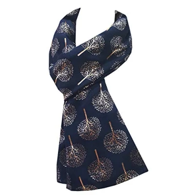 World of Shawls Gold Foil Mulberry Tree Print Fashion Scarf (Dark Navy Blue)