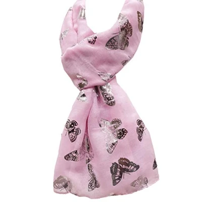 World of shawls New Butterfly Print Ladies Celebrity Style Scarves Maxi, Scarf, Wrap, Sarong, (Baby Pink With Silver Foil Butterfly)