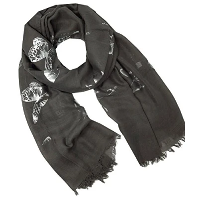 World of shawls New Butterfly Print Ladies Celebrity Style Scarves Maxi, Scarf, Wrap, Sarong, (Glitter Grey)
