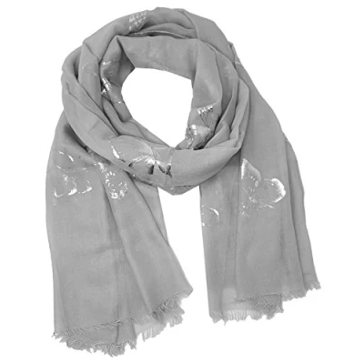 World of shawls New Butterfly Print Ladies Celebrity Style Scarves Maxi, Scarf, Wrap, Sarong, (Glitter Light Silver)