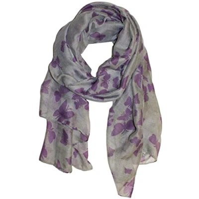 World of shawls New Butterfly Print Ladies Celebrity Style Scarves Maxi, Scarf, Wrap, Sarong, (Grey/Purple)