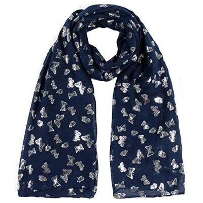 World of shawls New Butterfly Print Ladies Celebrity Style Scarves Maxi, Scarf, Wrap, Sarong, (New Glitter Navy Blue)