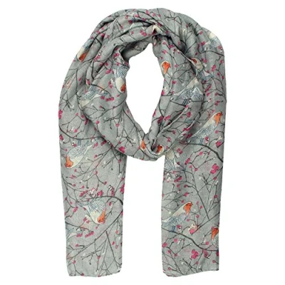 World of Shawls New Ladies Womens Celebrity Style Long Scarf Scarves Maxi Sarong (Robin Birds Grey)
