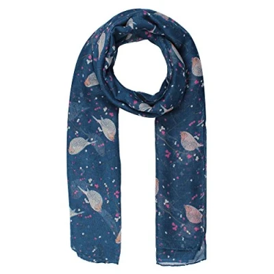 World of Shawls New Ladies Womens Celebrity Style Long Scarf Scarves Maxi Sarong (Robin Birds Navy Blue)
