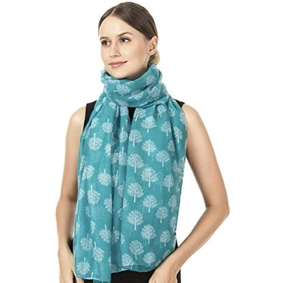 World of Shawls New Ladies Womens Celebrity Style Long Scarf Scarves Maxi Sarong Sale (Teal With White Mulberry Tree Print Scarf)