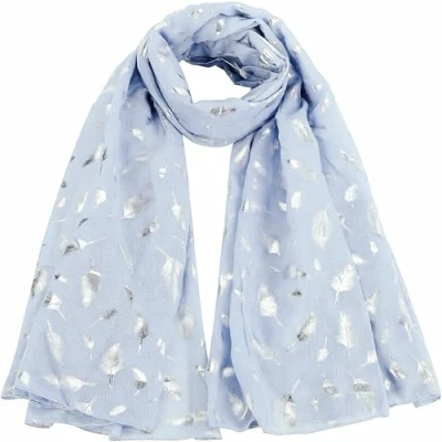 World of Shawls New Ladies Womens Glitter Foil Sparkle Print Scarf Scarves Clearance (Feather Baby Blue)