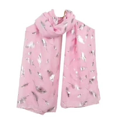 World of Shawls New Ladies Womens Glitter Foil Sparkle Print Scarf Scarves (Feather Baby Pink)