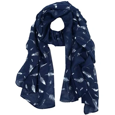 World of Shawls New Ladies Womens Glitter Foil Sparkle Print Scarf Scarves (Feather Navy Blue)