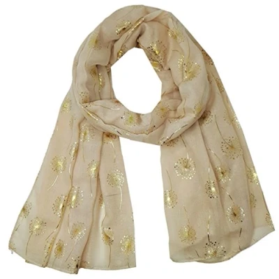 World of Shawls New Ladies Womens Glitter Sparkle Print Scarf Scarves (Dandelion Beige)
