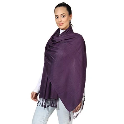 World of Shawls Pashmina Style All Seasons Handcrafted Wrap Shawl Stole Scarf (Aubergine)