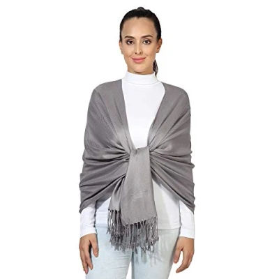 World of Shawls Pashmina Style All Seasons Handcrafted Wrap Shawl Stole Scarf (Dark Silver)
