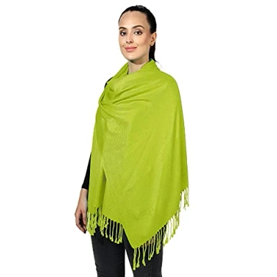 World of Shawls Pashmina Style All Seasons Handcrafted Wrap Shawl Stole Scarf (Lime Green)
